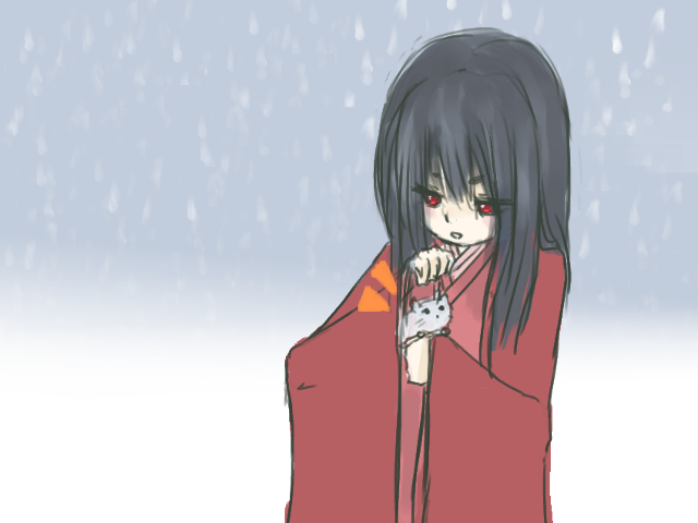 雪原の中一人彷徨うことになったけど、ねずみが懐に入り込んでいることに気づくかぐやさん。